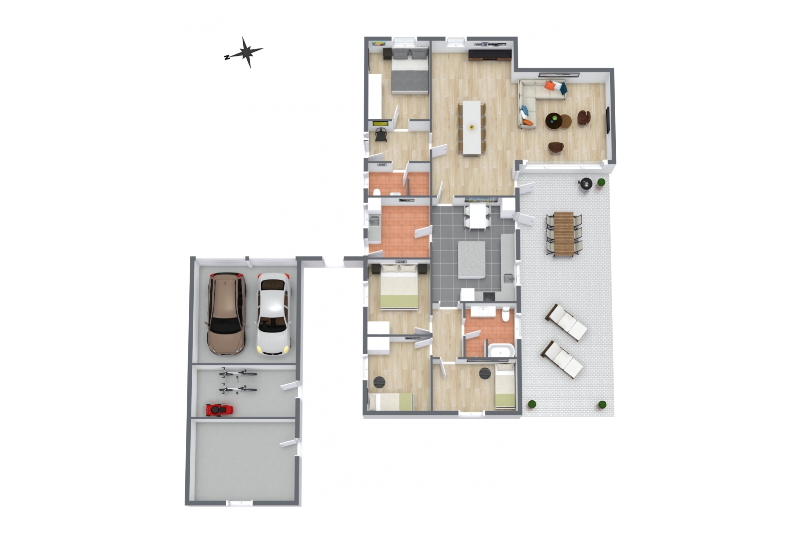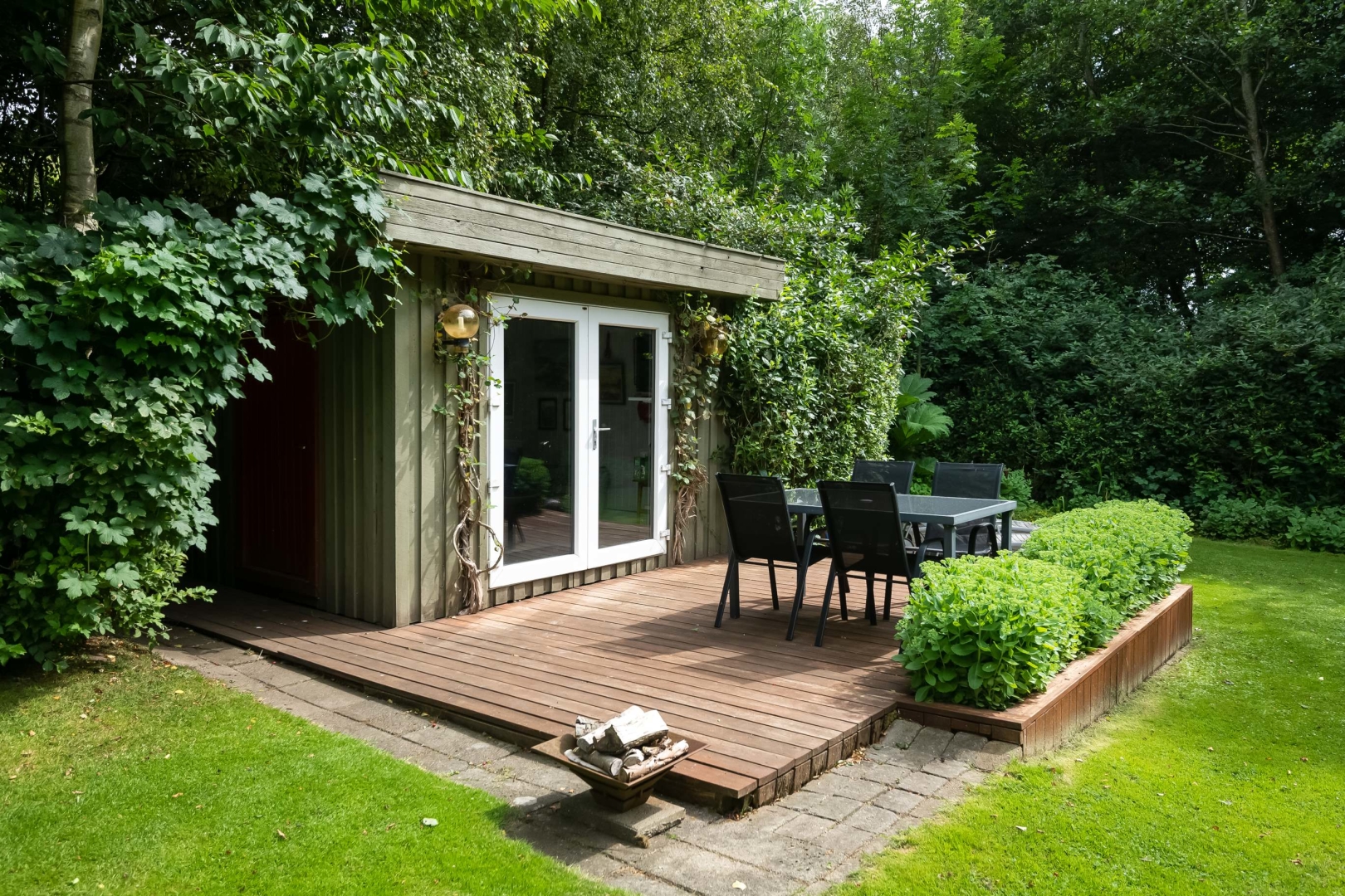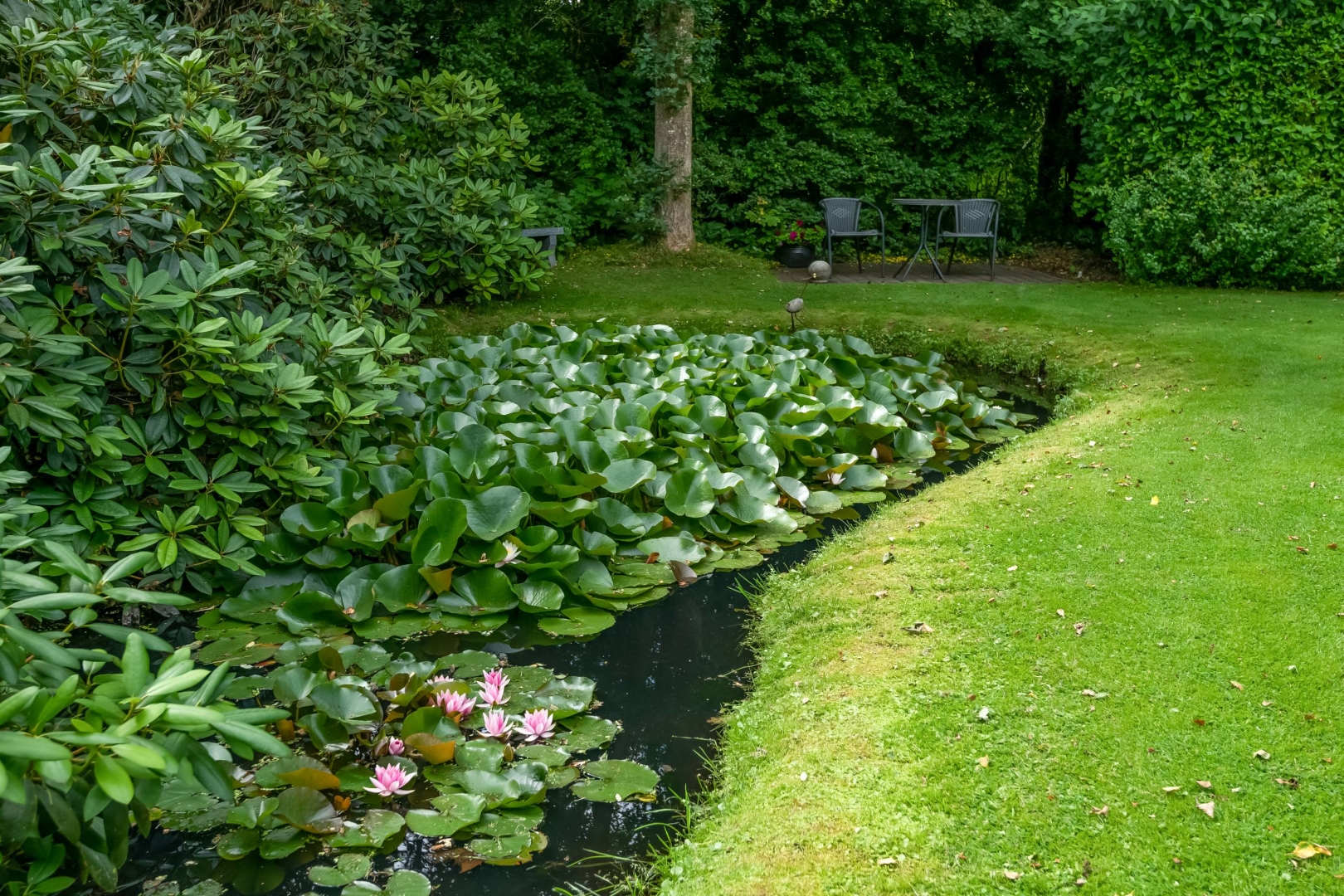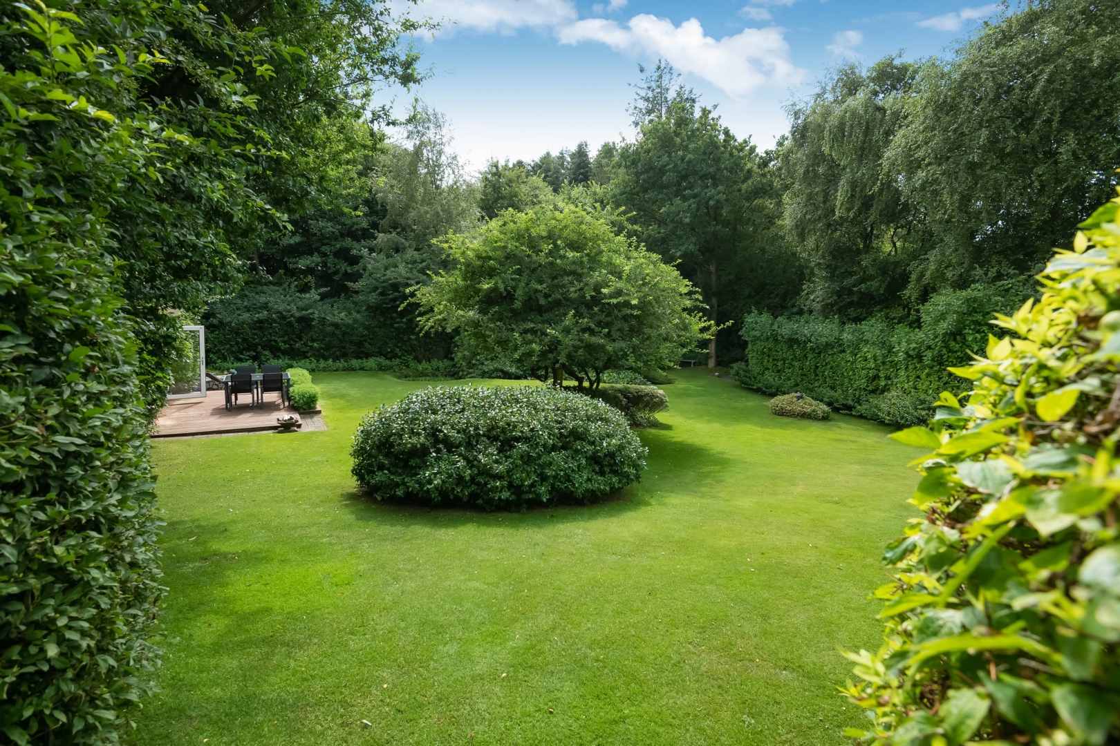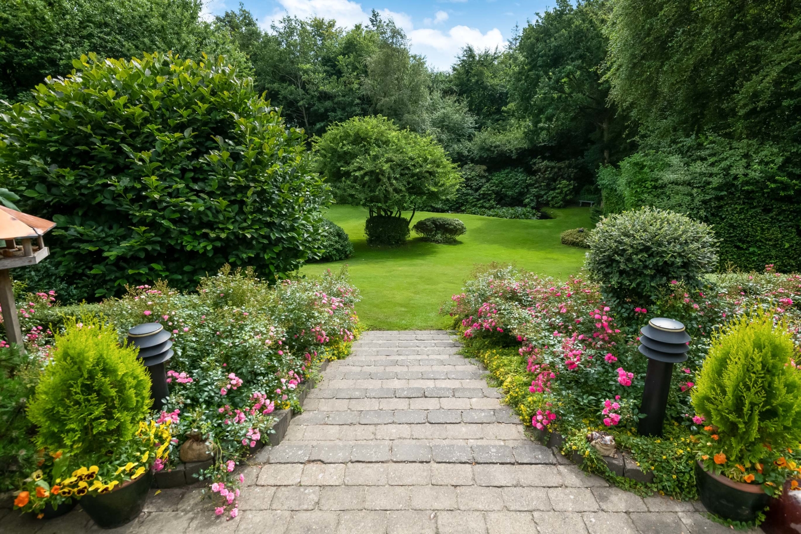 Den store have er et kapitel for sig. Stor flot sydvestvendt terrasse med trappe nedgang til fantastisk ugeneret havemiljø med mindre anneks med gode terrasser, flot mindre havesø fuld af åkander. På den sydvendte husmur er der monteret markise med automatik. Hyggelig grusbelagt indkørsel.