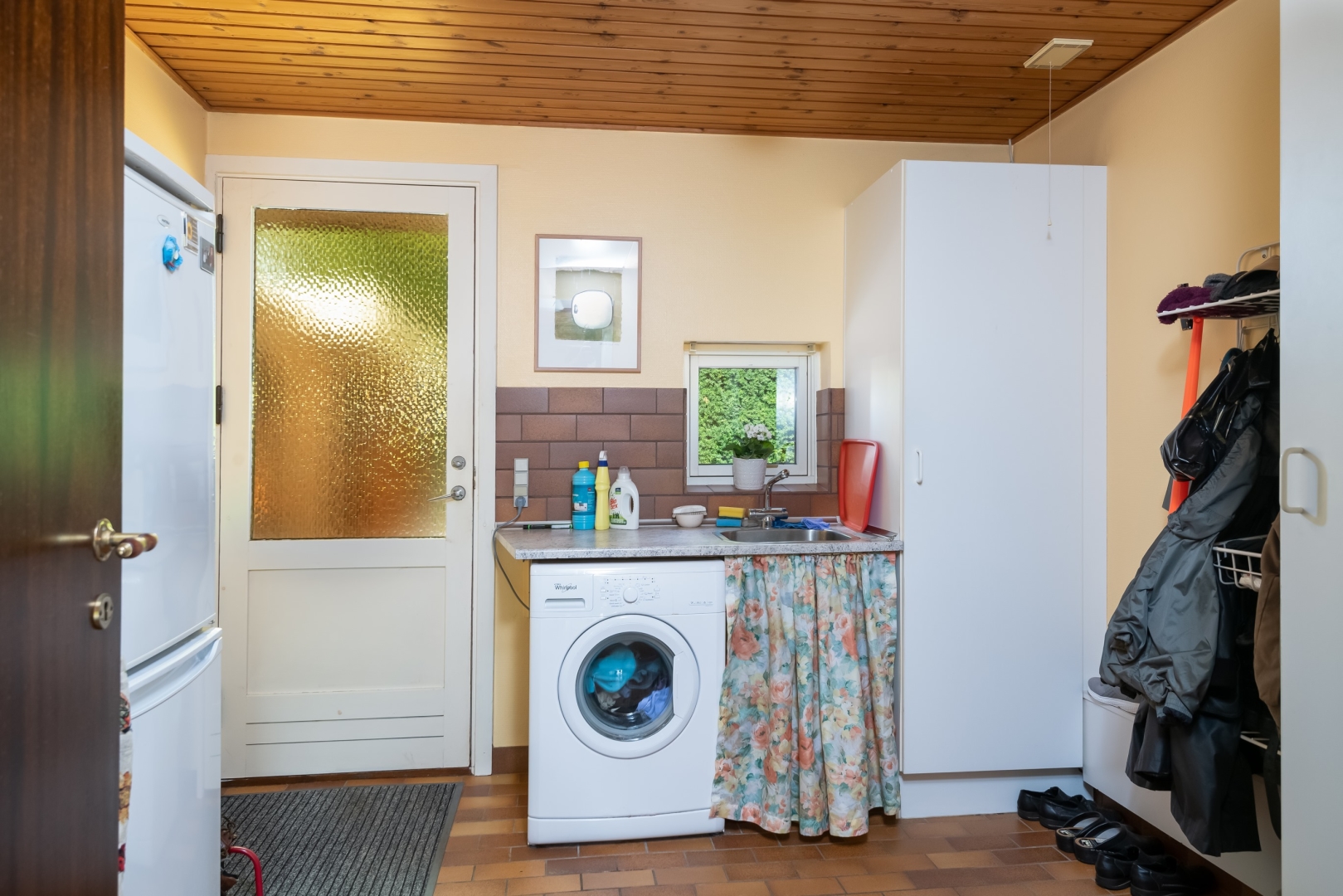 Villaen er særdeles velholdt og godt indrettet med entré, nyere køkken/alrum med udgang til skøn terrasse og have, dejlig stor spise- og opholdsstue også med udgang til terrassen, soveværelse, badeværelse med bruseniche, fordelingsgang til separat afdeling med 3 værelser og badeværelse med kar og bruseniche, bryggers.