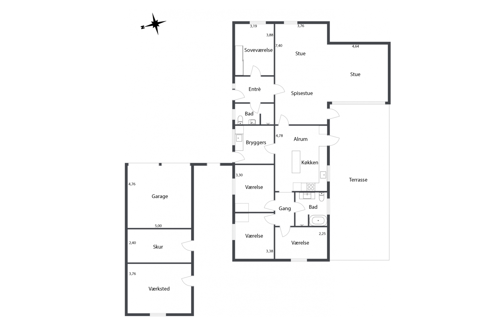 66 m² muret bygning med dobbelt garage og 2 gode separate rum med flere anvendelsesmuligheder.